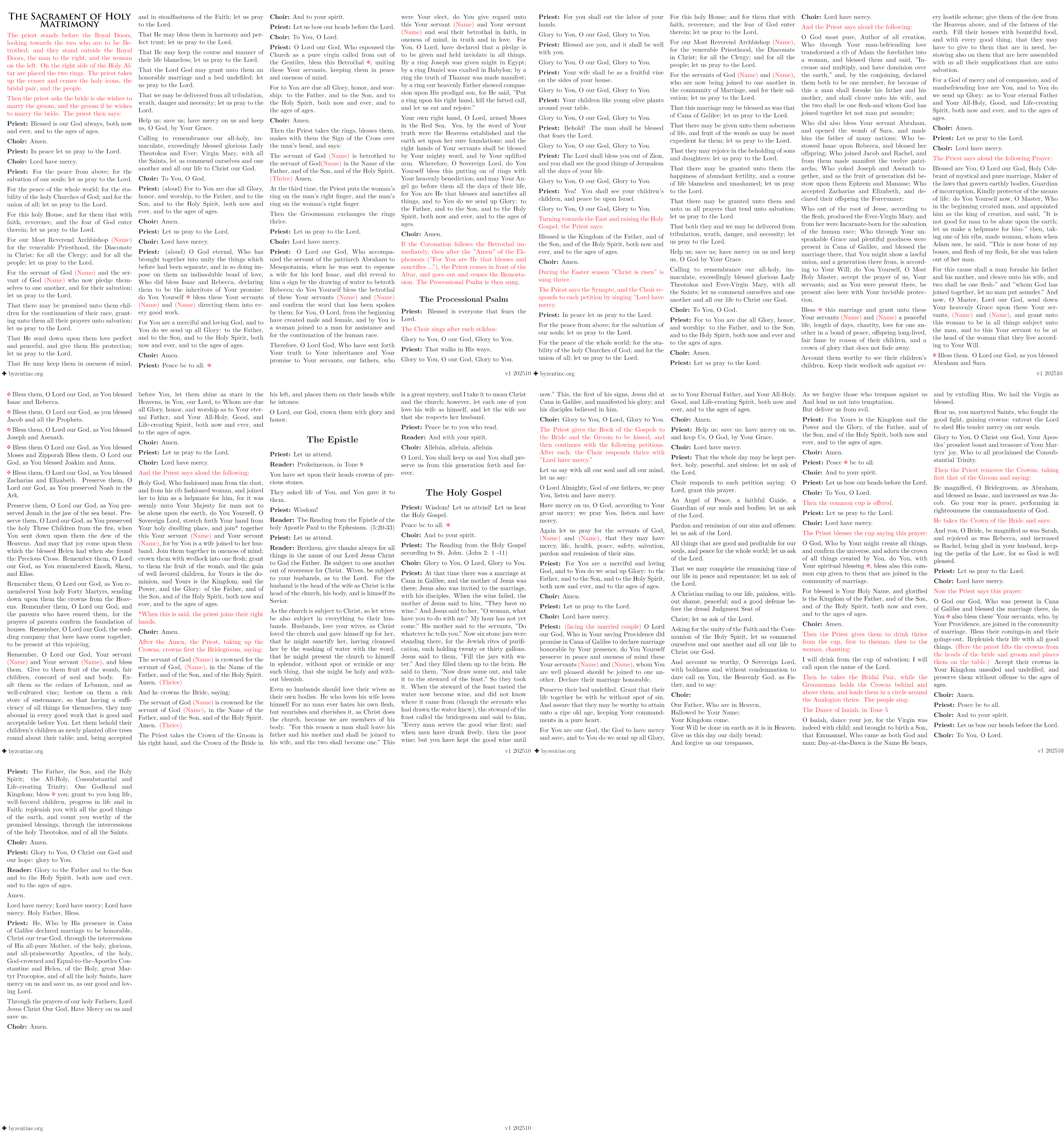 The Sacrament of Holy Matrimony According to The Byzantine Rite